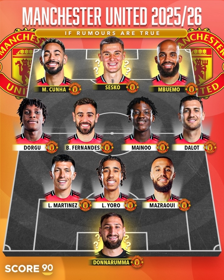 外媒Score90此前对曼联新赛季潜在首发11东谈主进行了瞻望,其中塞斯科将与库尼亚、姆贝莫构成曼联新三叉戟。