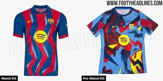 这款第四球衣贪图引东说念主注目,如知名足球装备网站FootyHeadlines所展示,它将巴萨的红蓝色与天蓝色混杂,并配以不限定的线条,冲破了传统的巴萨球衣贪图,通盘这些细节王人辅以黄色的耐克Logo和队徽。