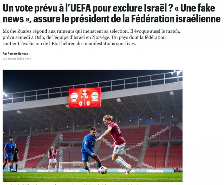 10月07日讯 北京技巧10月12日日曜日,世初赛欧洲区小组赛I组第7轮,挪威镇守主场迎战以色列。在这场比赛之前,针对有计较在欧足联进行投票以抛弃以色列的报说念,法国媒体巴黎东说念主报暗示,以色列足协主席作念出了回答称这是假新闻。