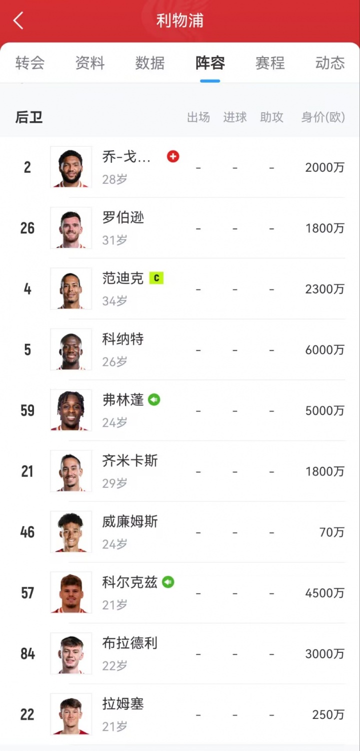 在范迪克已年满34岁,科纳特续约成疑,戈麦斯伤病延续的情况下,大要利物浦应将转会要点更多放在补充中卫深度上。