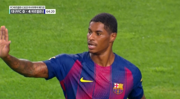 比赛第65分钟,埃里克-加西亚右路横敲,拉什福德迎球推射破门,斩获加盟巴萨后首粒进球,巴萨5-0向上大邱FC。