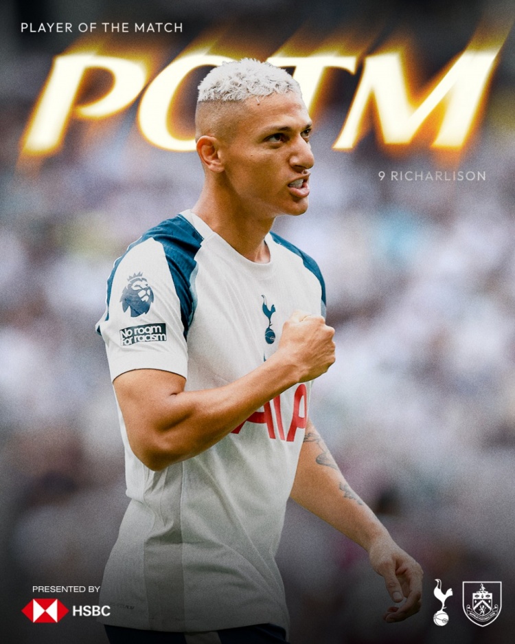 此役理查利森梅开二度,匡助球队取胜,热刺官方秘书,经由球迷的投票,理查利森当选本场比赛热刺队内最好球员。