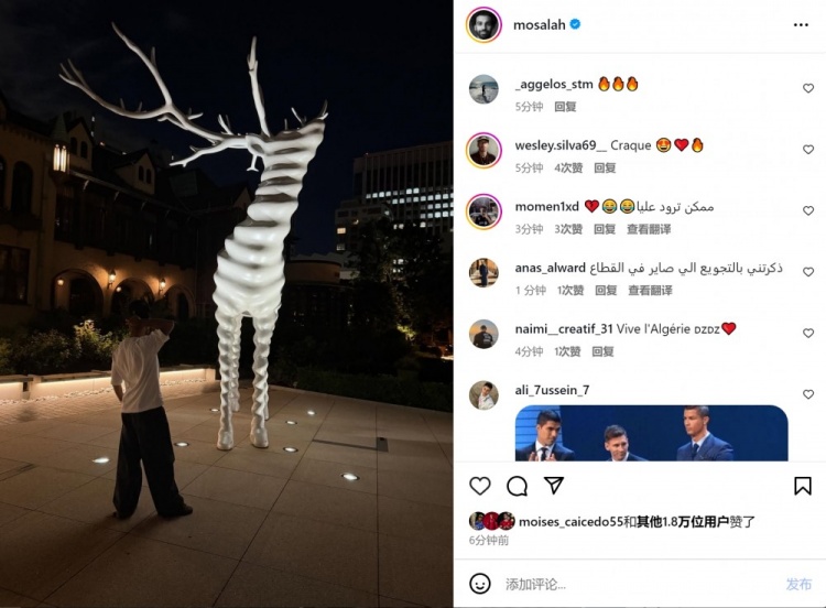 8月4日讯 利物浦时尚萨拉赫更新社媒动态,晒出日本东京鹿形雕琢的相片。