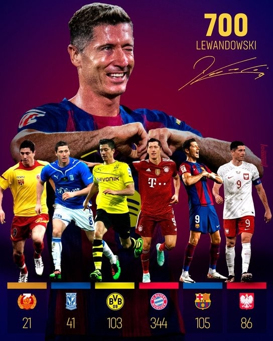 9月29日讯 西甲第7轮比赛,巴萨在主场以2-1的比分逆转投降皇家社会,比赛第58分钟亚马尔传中助攻,莱万头球破门。值得一提的是,这亦然莱万在任业生活的第700球。