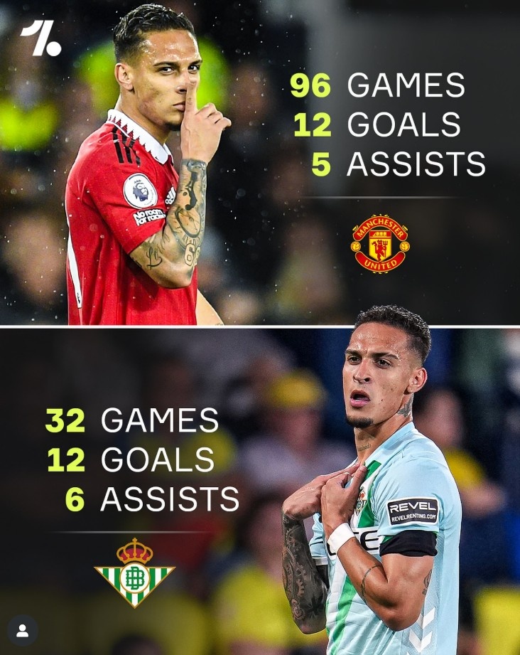 据统计,安东尼在贝蒂斯生存32场各项赛事孝顺12球6助攻,平直参与18球,而其在曼联生存96场比赛打进12球助攻5次,平直参与17球。