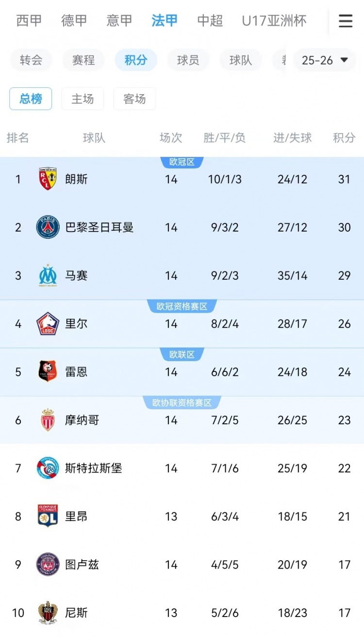 数据统计浮现,巴黎在14轮联赛事后未能登顶积分榜,这亦然近10年来第3次出现。而此前2次(16-17赛季第3、20-21赛季第4),巴黎在当赛季均未能最终夺得法甲冠军。
