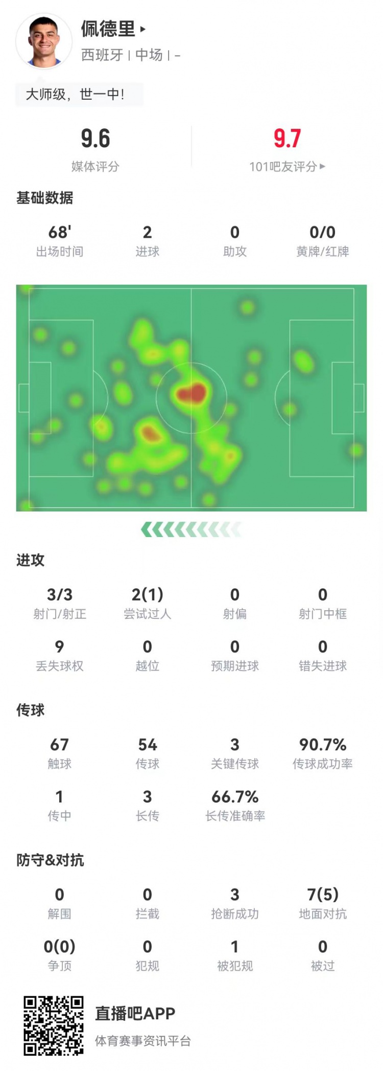 9月8日讯 西班牙在本轮世预赛6-0领先土耳其,佩德里本场数据如下: