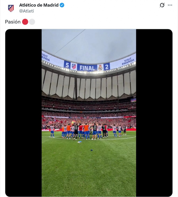 赛后马竞官推放出该队在这场比赛后庆祝胜利的视频,配文:激情!