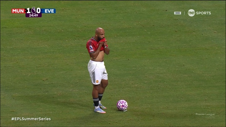 姆贝莫在季前赛代表曼联上演首秀,比赛中他被镜头拍到掀起球衣露出上半身,球迷也对他的身材发表了热议。