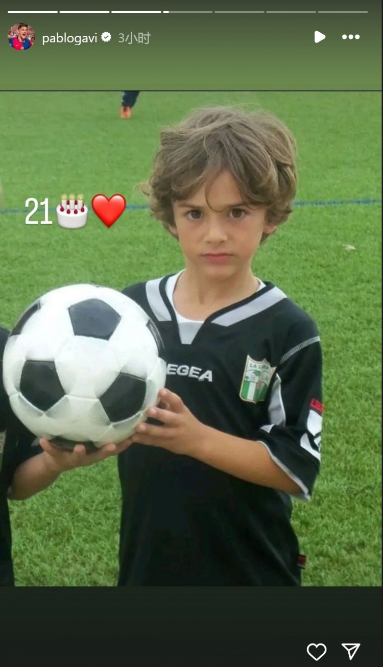 加维迎来了21岁生日,他在社交媒体上晒出自己儿时的照片,并配上“21”数字,以及蛋糕和红心的表情符号。