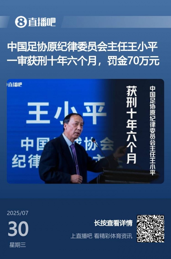 07月30日讯 今日中超公司原董事长刘军一审获刑11年,足协原纪律委员会主任王小平一审获刑十年六个月。