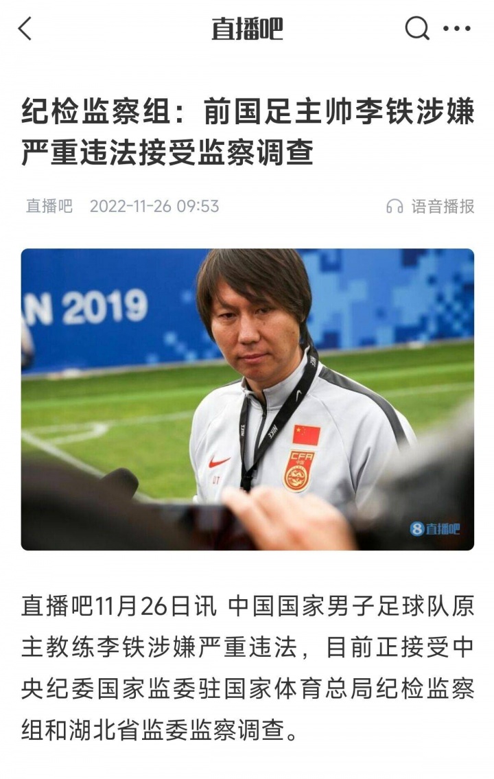 国足原主教练李铁一审被判处有期徒刑二十年,二审维持原判