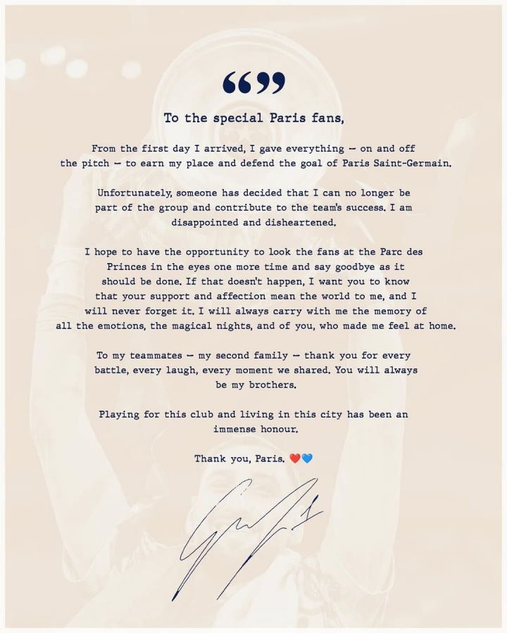 08月13日讯 多纳鲁马发表声明,对落第巴黎名单和离队别传作念出回复。