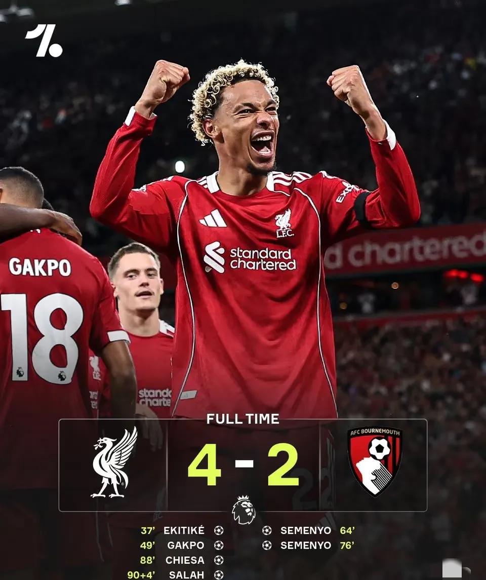 而利物浦7大新援有4东说念主在英超揭幕战出场,匡助球队4-2降服伯恩茅斯,获取开门红。埃基蒂克1球1助,8分,高光;维尔茨,有灵性但造反太差,6分;弗林蓬,戒备较肃穆,造反较差,6分;科尔克兹,基本被敌手完爆,5分!
