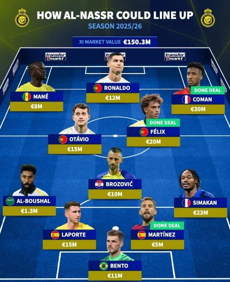 利雅得得手官方阐述,法国国脚金斯利·科曼加盟球队。罗马诺袒露,科曼的转会费略低于3000万欧元,年薪将高达3000万欧,他将身披21号战袍。