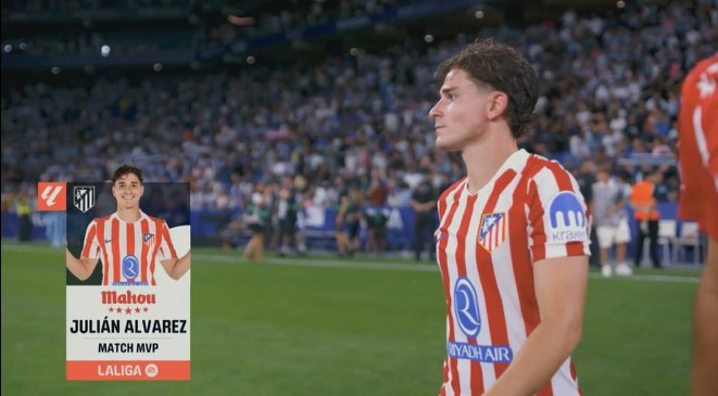 8月18日讯 西甲首轮,马竞1-2遭逆转客负西班经纪东谈主。赛后阿尔瓦雷斯当选全场最好球员。