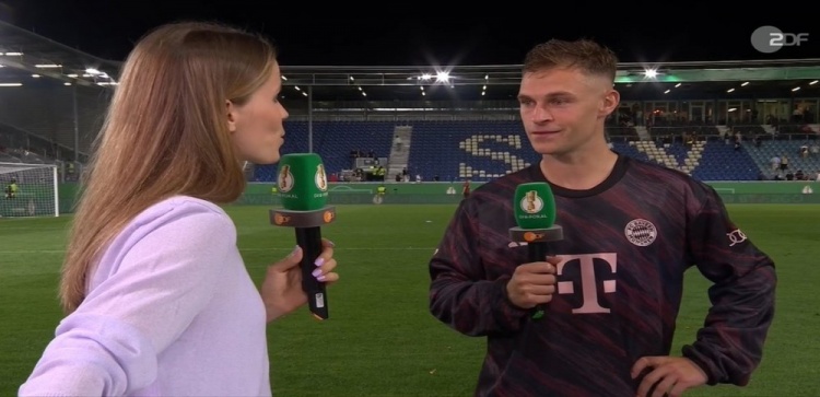 8月28日讯 德国杯首轮比赛,拜仁3-2绝杀韦恩,晋级下一轮,基米希赛后采用了媒体的采访。