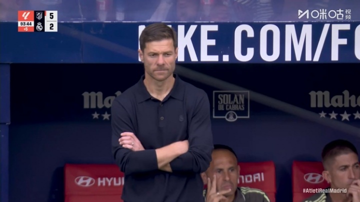 德比战丢五球!皇马主帅阿隆索场边色彩严肃,双手抱胸若有所想