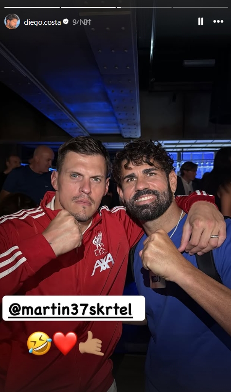 但在此次听说赛的赛后,37岁的迭戈-科斯塔又晒出了与40岁的斯科特尔的合影↓