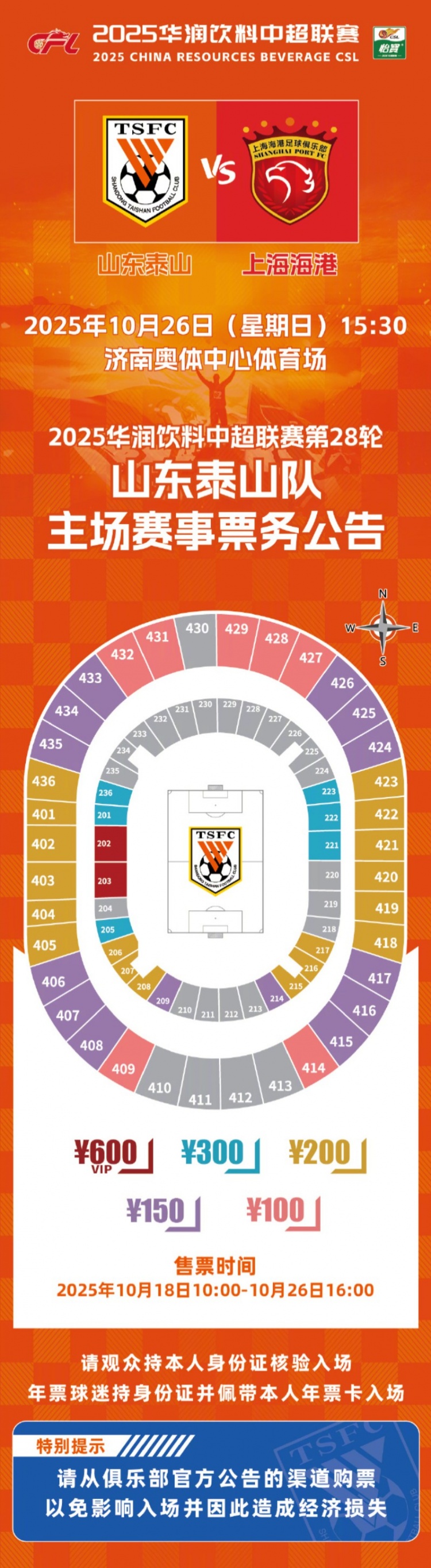 2025华润饮料中超联赛第28轮山东泰山队主场赛事票务公告