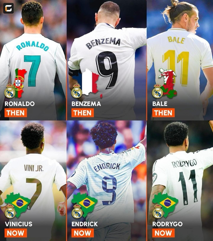 下赛季皇马的7号、9号、11号均属于巴西球员,维尼修斯身披7号,恩德里克身披9号,罗德里戈身披11号。