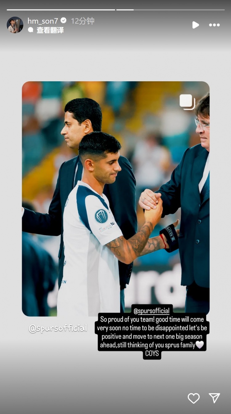 前热刺队长孙兴慜社媒发文饱读吹球队,他晒出罗梅罗的像片,并写说念:“为球队感到特地狂妄!好意思好的时光很快就会到来,莫得技术去失望,让咱们保握积极的心态,迈向下一个遑急的赛季。一经在念念着你们,热刺全球庭。加油热刺!”