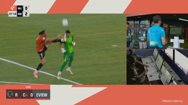 08月17日讯 西甲首轮巴萨3-0客胜马洛卡,门将霍安-加西亚上半场被争球时被马洛卡球员穆里奇踢到面颊,变成敌手红牌。