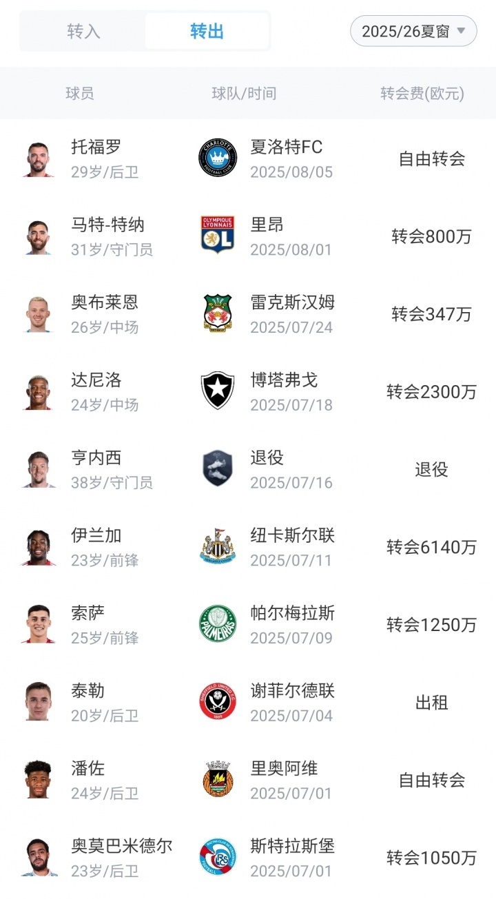 诺丁汉丛林今夏卖东谈主(以为1.1887亿欧)↓