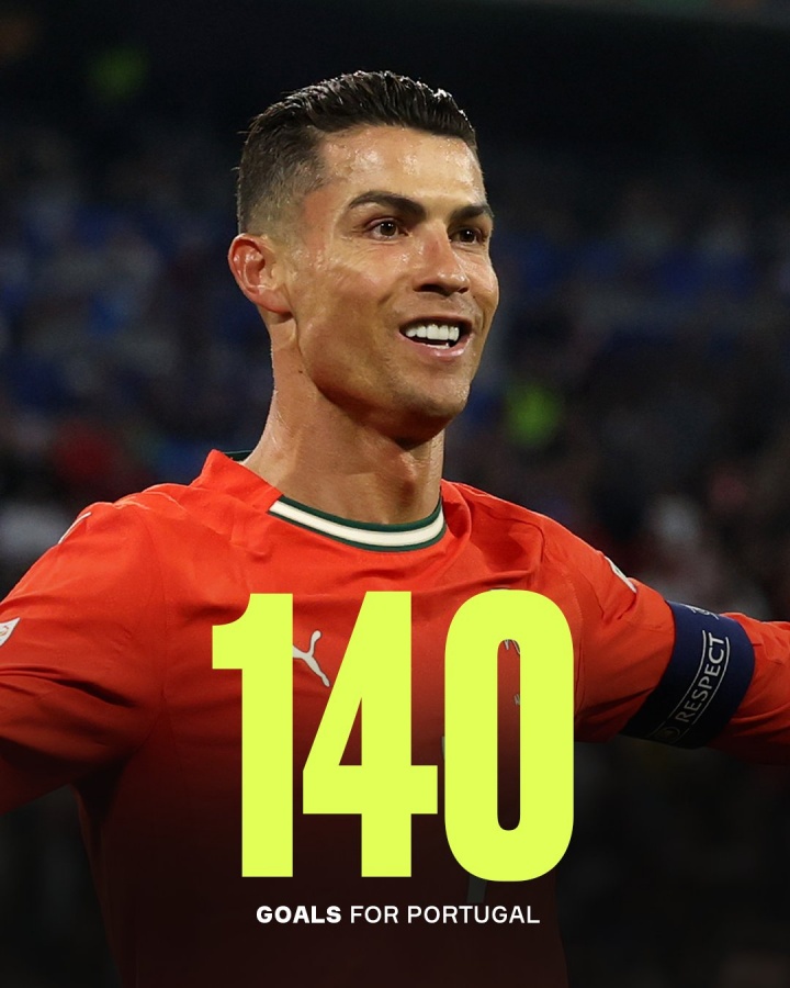 9月7日讯 C罗在对阵亚好意思尼亚的比赛中梅开二度,也曾打进140个国度队进球。