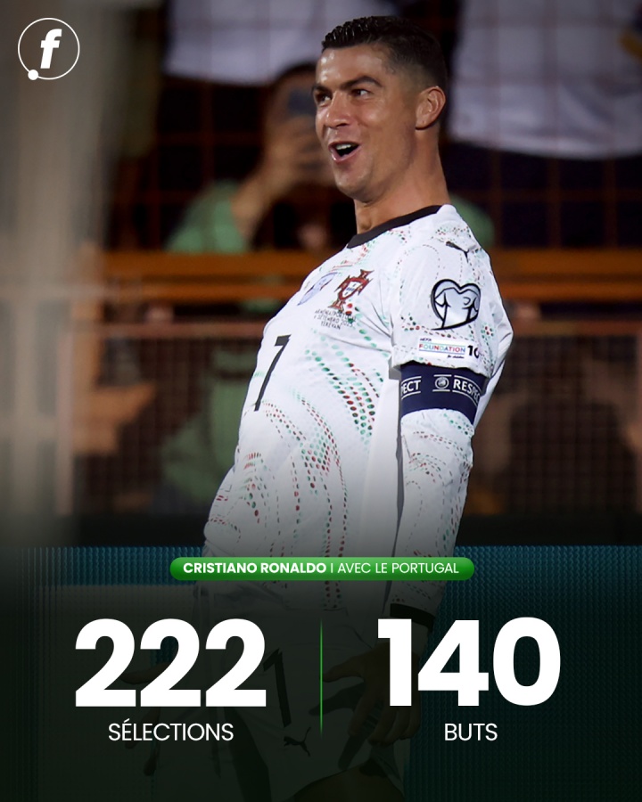 09月07日讯 C罗当天在对阵亚好意思尼亚的比赛中梅开二度,还是打进140个国度队进球。