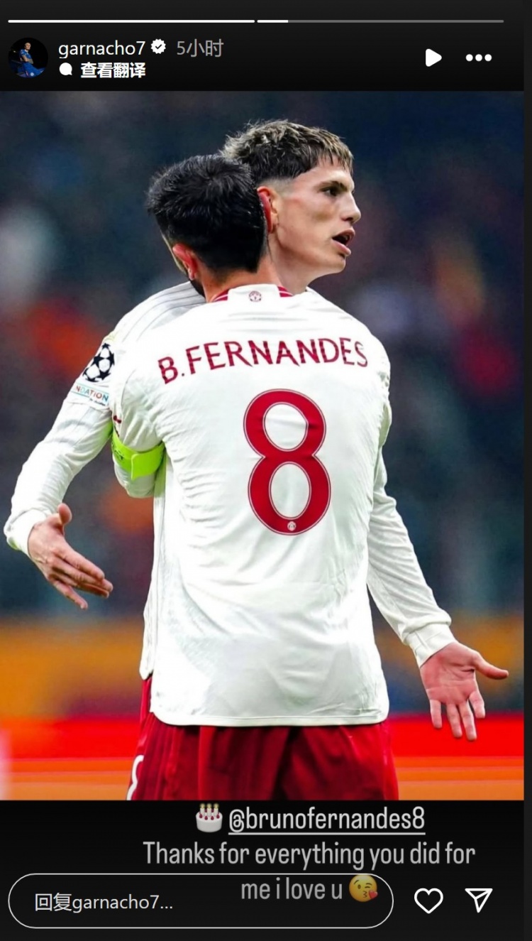 9月9日讯 加纳乔更新社媒动态,为前队友B费庆生。