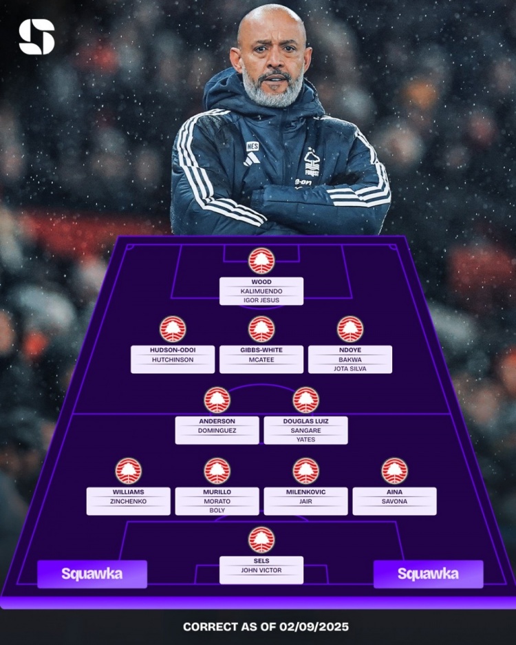 中场:安德森(多明戈斯)、谈格拉斯-路易斯(桑加雷/耶茨)、奥多伊(哈钦森)、吉布斯-怀特(麦卡蒂)、恩多耶(巴卡瓦/若塔-席尔瓦)