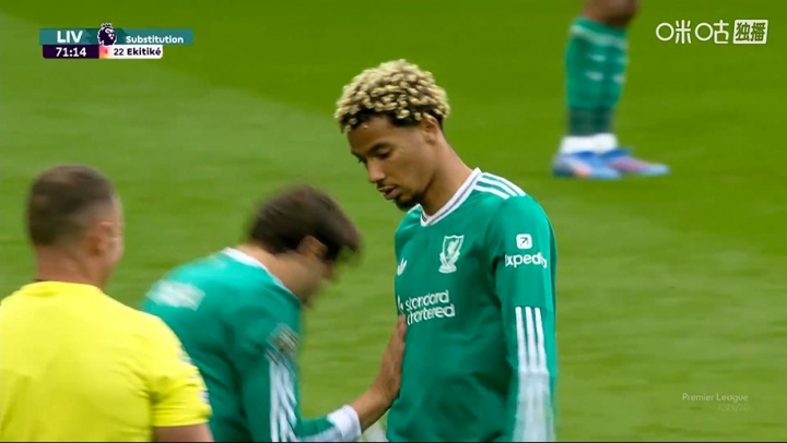 退换锋线!利物浦第72分钟换下埃基蒂克,基耶萨替补登场