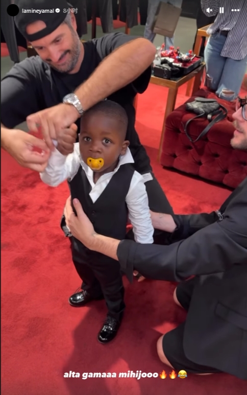 视频中亚马尔的弟弟正在服装师的匡助下试穿一套迷你西服,这被解读为亚马尔可能要携家东说念主一同干预下周进行的金球奖受奖庆典的信号。