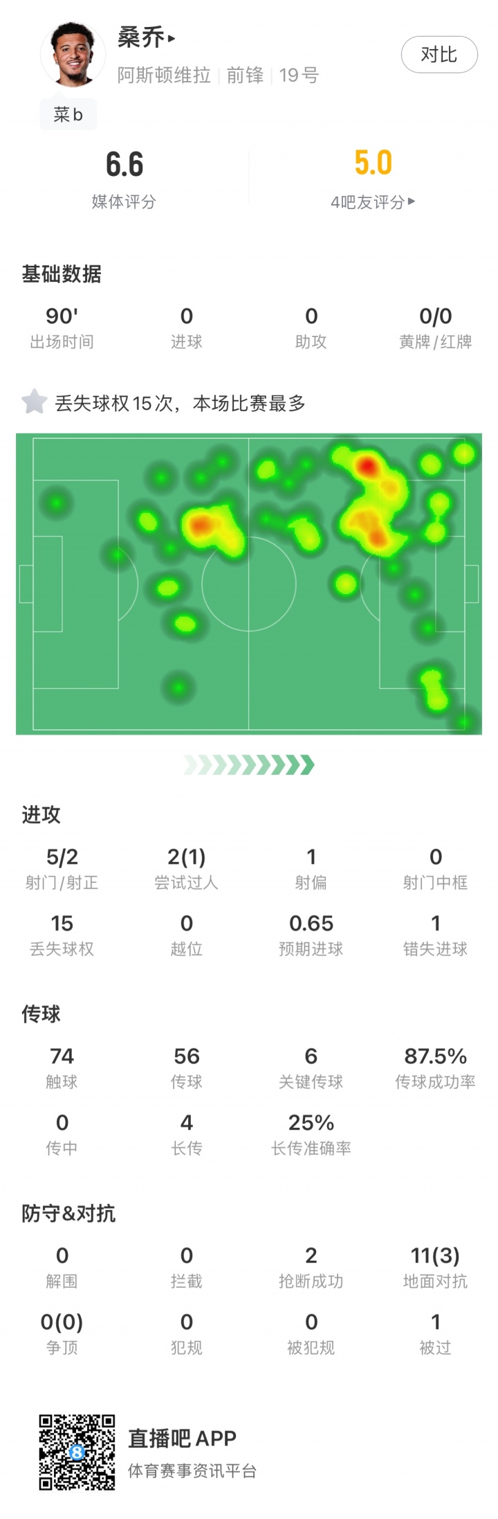桑乔此役首发打满全场,5射2正,孝顺6次关节传球,不外他1次错失进球,仍无法冲突进球荒。