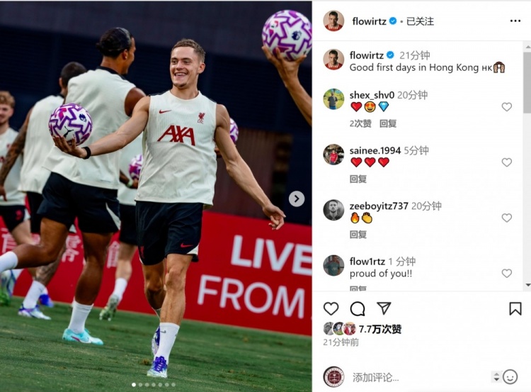 7月24日讯 利物浦新援维尔茨更新社媒动态,晒出在中国香港历练的相片。